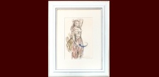 Závěsný obraz „Dívka se srpem" , je proveden technikou lavírované kresby pastelem a akvarelem 30 x 20 cm (ve výřezu pasparty), adjustováno v paspartě pod sklem, rámováno 54 x 43 cm . Signováno v PD: K.Svolinský