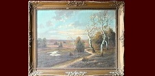 Obraz, „Vřesoviště “, olej /plátno 74 x 100 cm rámováno blondelovým rámem , signováno A.VOIST, obraz je ve velmi dobré kondici po dobovém restaurování s nepatrnými retušemi.