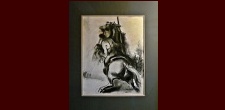 Závěsný obraz „Vzpínání koně“ je proveden kombinovanou technikou na papíře, ve výřezu 39x31cm, adjustováno v dvojité kaskádové paspartě pod sklem. Rámováno luxusní lištou 67x55 cm, s imitací černého, žilkového mramoru. Signováno v PD: K.JÍLEK