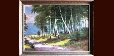 Obraz, „Podél bříz “, olej / plátno 51 x 97,5 cm rámováno lištovým rámem 62,5 x 119 cm, sig. A. Šimorda, obraz je ve velice dobré kondici.